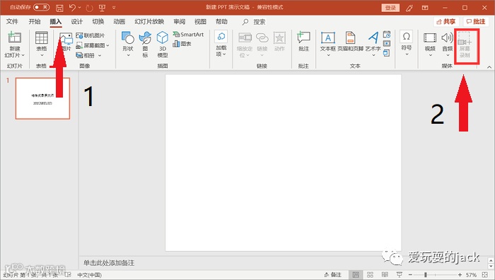 在「插入」栏的最右边有一个工具叫做 「屏幕录制」。