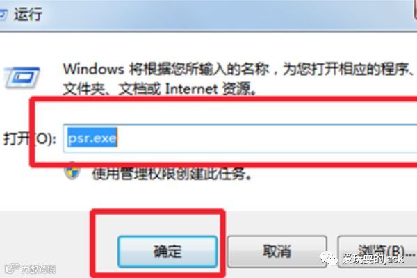 3、然后,在“运行”窗口中输入“psr.exe”,点击确定。