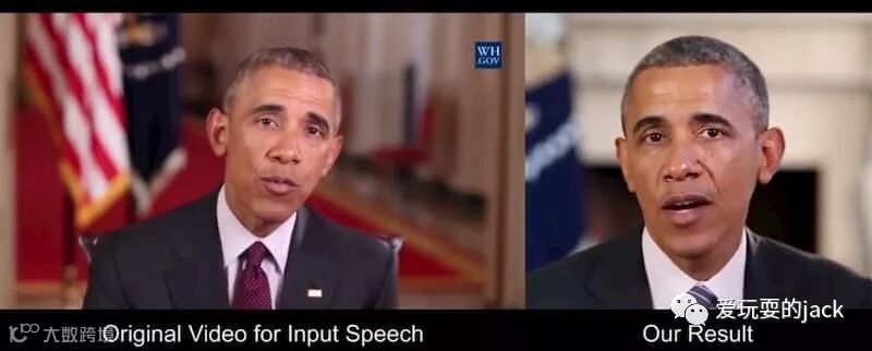 自动生成的根据一张脸的表情和动作,重建另一张脸。最著名的例子是虚拟的奥巴马演讲。2017年,华盛顿大学的团队发表了一段奥巴马的演讲视频。奥巴马其实从未做过这个演讲,是将别人的表情和口型套在他脸上生成的,语音也是合成的。