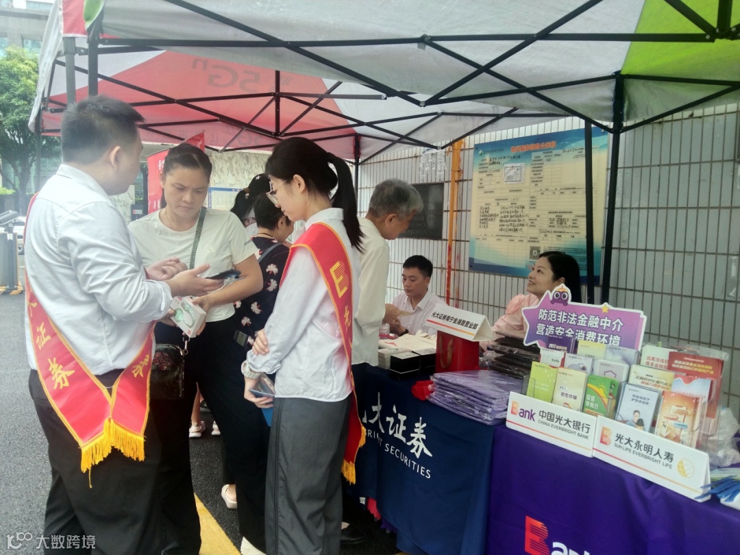 为积极践行以人民为中心的发展理念,履行金融机构社会责任,提升全民金融知识水平及防范风险能力,光大证券南宁金浦路营业部携手光大银行南宁分行、光大永明保险广西分公司、中国联通广西分公司于8月29日上午深入南宁武警支队生活小区,开展以“防范非法集资和非法证券”为主题的金融投教知识宣传活动。