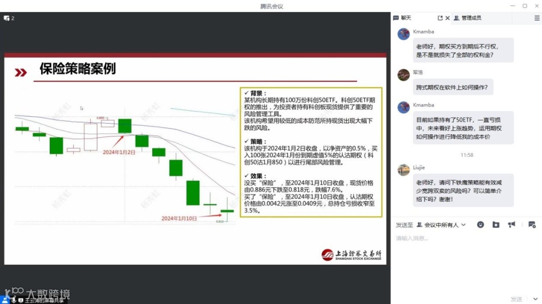 为践行以人民为中心的发展理念,进一步加强投资者对期权的理解,引导投资者理性参与投资及资产配置,2024年4月20日昆明营业部联合上海证券交易所举办“2024年期权大讲堂”线上培训活动。