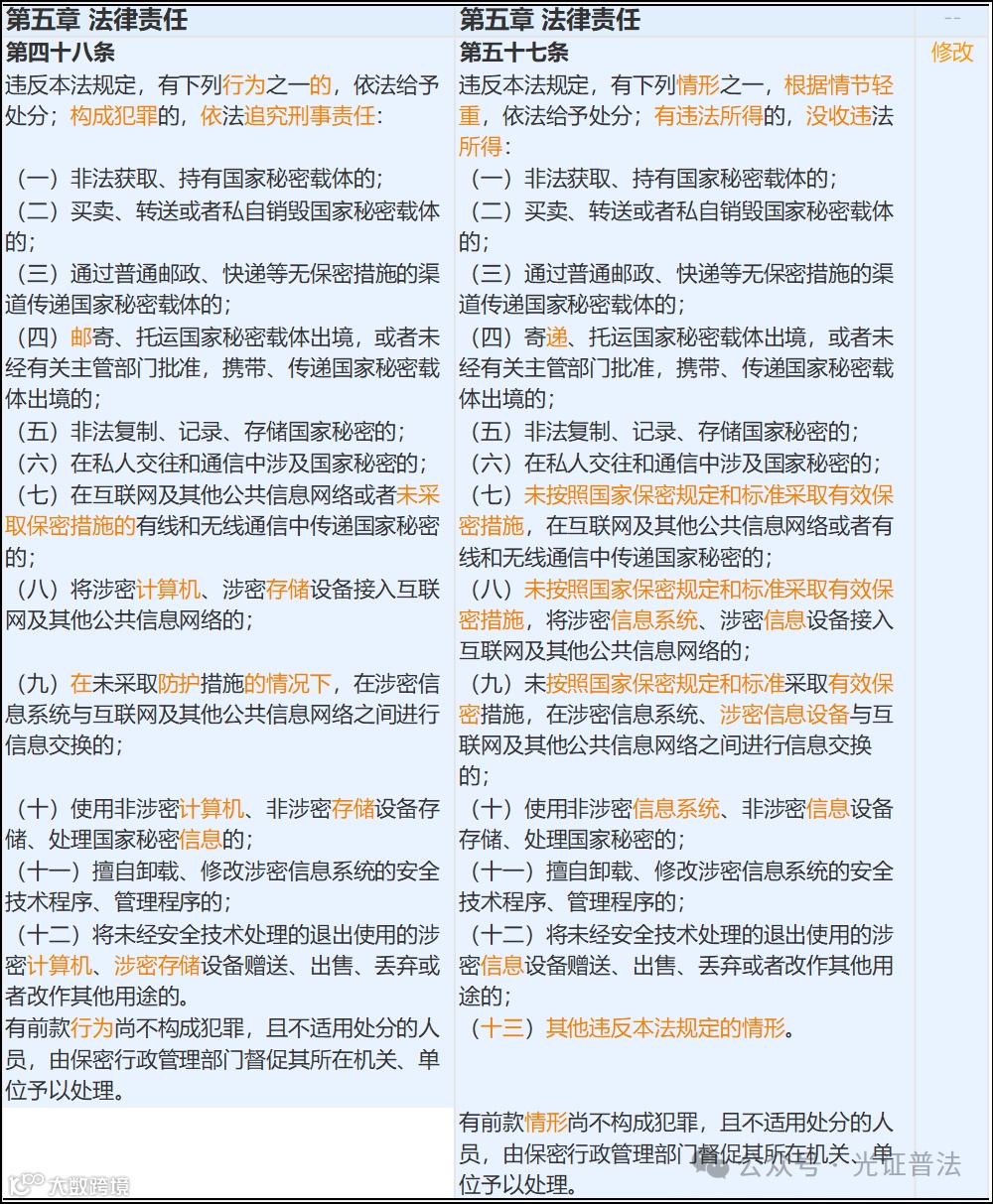 原《保密法》共53条,本次修订对其中34条进行了修订(含二合一1条,一拆二2条,拆并后增加1条),另外新增了11条。经过修订后,新《保密法》共65条。具体修订如下: