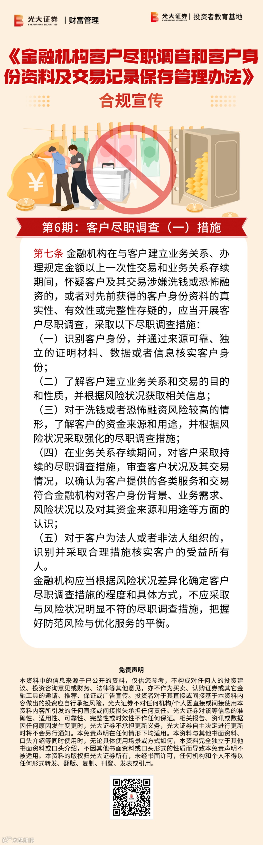 【光大证券投教】合规宣传丨《金融机构客户尽职调查和客户身份资料及交易记录保存管理办法》第6期:客户尽职调查(一)措施 光大证券投教基地