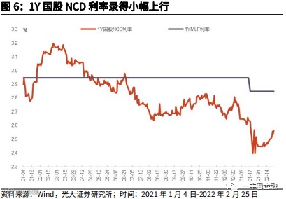 四是部分银行中长端存贷利率有倒挂现象,存在潜在套利风险。如前所述,协议存款是市场化定价,一般在4%以上。对于部分稳存增存压力相对较大的中小行而言,协议存款利率会更高。目前,5Y-LPR报价为4.60%,根据2021年四季度货币政策执行报告披露的数据,截至2021年12月末,贷款定价按照LPR减点执行的规模占比为26.93%,即对于部分优质企业而言,不排除其获得的中长期贷款利率与协议存款利率存在倒挂现象,进而加剧了监管套利的风险。
