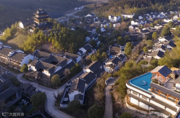 酒店建在誉为“江南古建筑博物馆”的4A级景区璟园里面的,酒店和璟园的整体风格是一致的,一大片的徽派建筑群,复刻了一个江南古村落出来。
