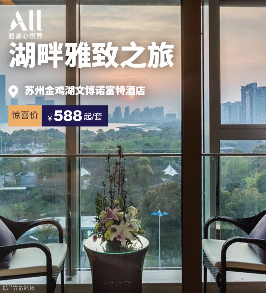 【暖冬】苏州金鸡湖文博诺富特1晚+双早+韩式炸鸡套餐1份=588元起