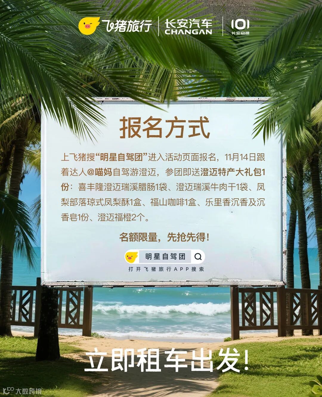 11.11元抢明星自驾团名额,仅限20人,预约11.14日海南的租车,跟着达人喵妈一起自驾澄迈!