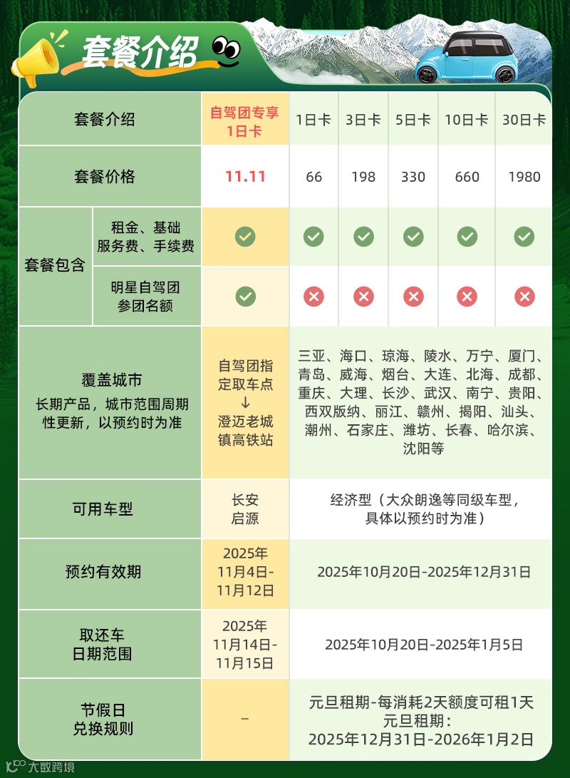 最近不少朋友在问租车的双11套餐,今天就来了!