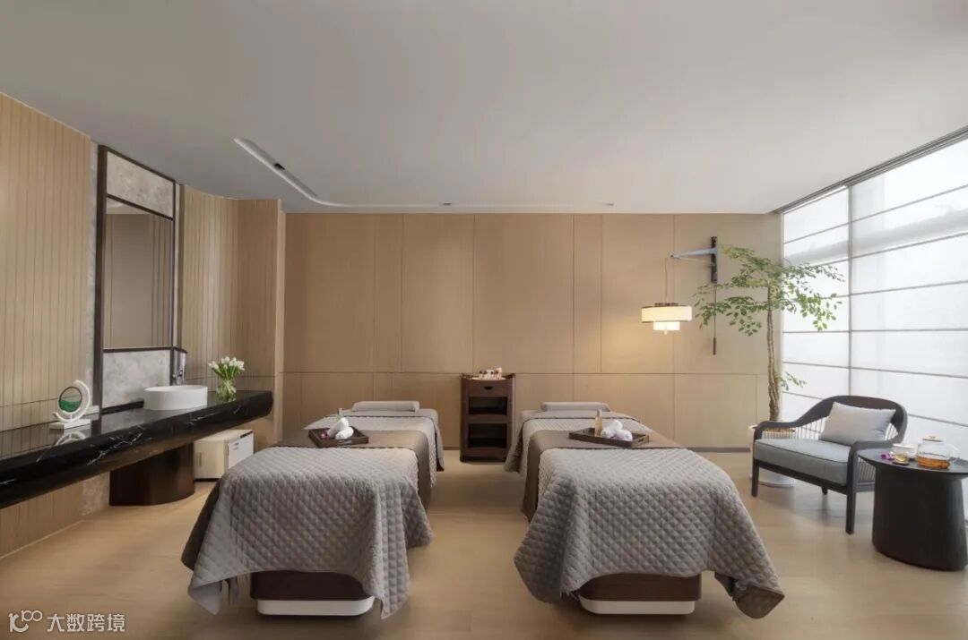 整个度假村由荷兰知名设计事务所 AIM 操刀,把仙林 “山水城林” 的意境和明代水墨画《金陵八景》的元素巧妙融合 —— 大堂的屏风、走廊的壁画、客房的装饰,处处能看到水墨山水的影子;作为 “白日方舟” 首店,还藏了很多 “船” 的小设计,从大堂的弧形吊顶到客房的舷窗式装饰,都在呼应 “城市度假方舟” 的定位,细节感满满。