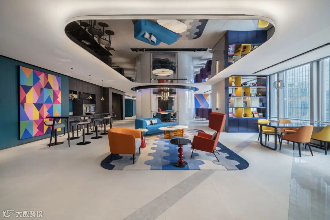 长沙玛珂酒店是2023年开业的,也相对比较新。我比较喜欢酒店的创聚空间,是一个集艺术、办公、音乐等多种功能的共创空间,整体设计是好看的撞色系。