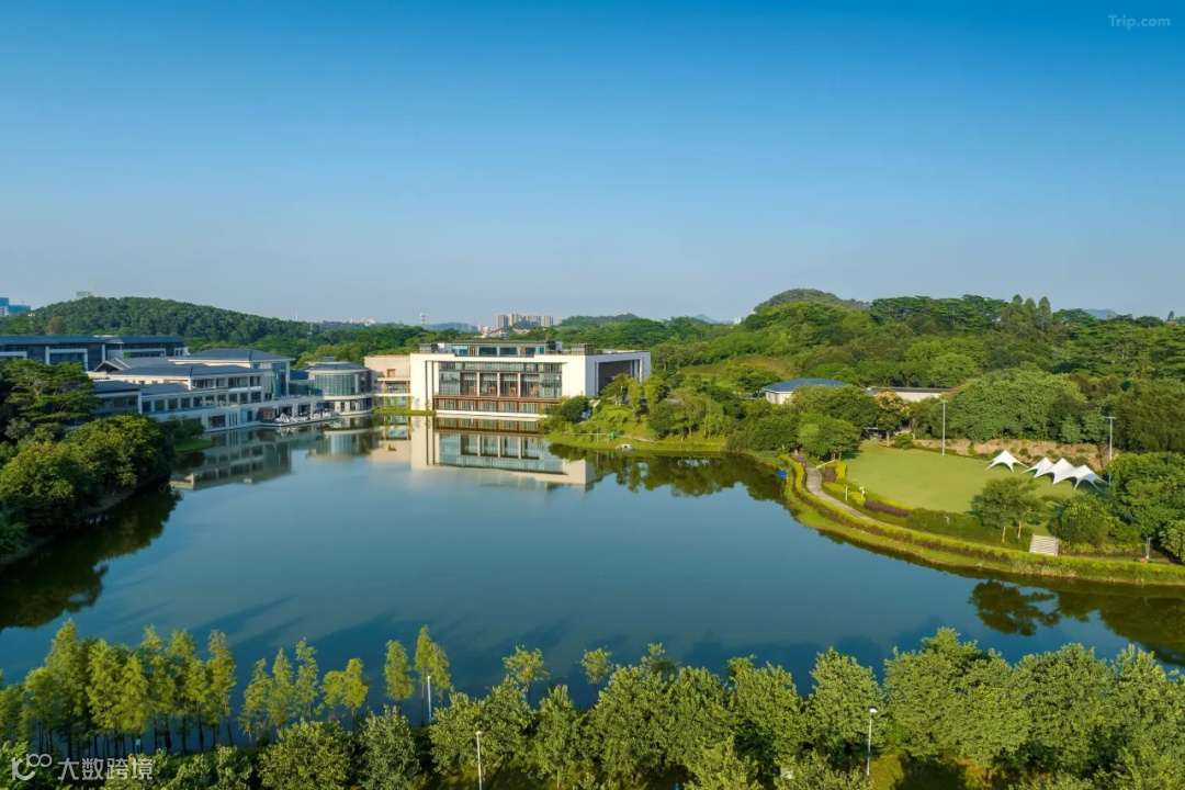 酒店占地面积约25万平方米,酒店挨着水濂湖和东莞植物园。由23栋风格高雅功能清晰的低密度低楼层建筑组成,依托楼、台、亭、湖以及绿树鲜花、大草坪,营造立体建筑空间和丰富园林景观,酒店还有非常多的亲子玩乐项目