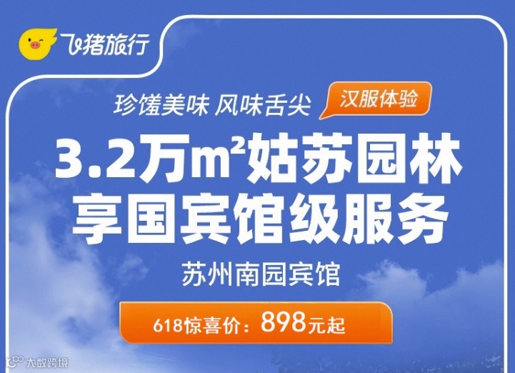 【苏超玩转暑期周末不加价】苏州南园宾馆1-2晚旅拍度假套餐 898元起