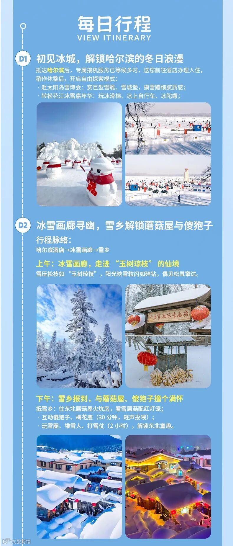 这个5日团就很适合想一次性把哈尔滨玩爽的宝子们,雪乡+亚布力一键打包!