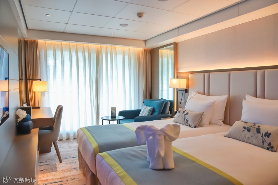 这是世纪游轮最硬核的承诺!拒绝内舱房的压抑,双11都是给的好货,每一间客房都带有独立私享阳台。