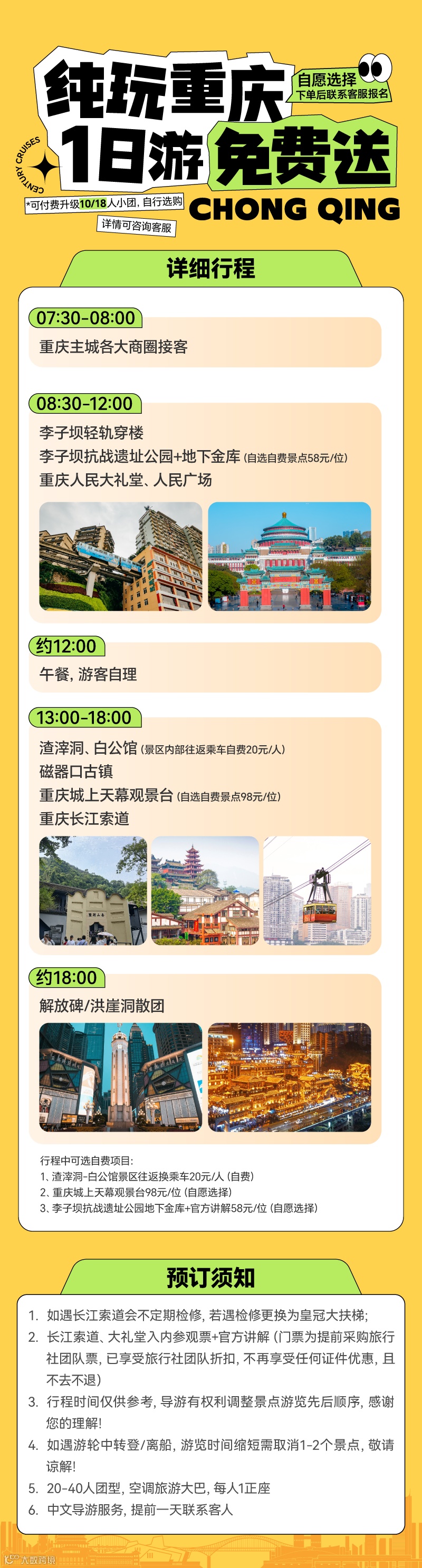 免费玩:价值¥120的重庆市区深度1日游,直接送!