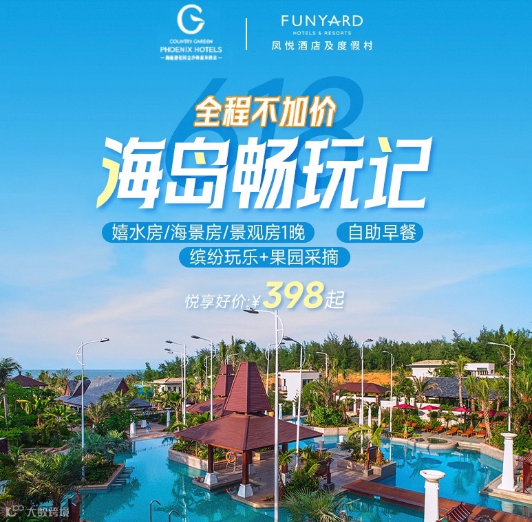 【全程不加价】海南碧桂园金沙滩温泉酒店1-2晚+含早+多重礼遇=398元起