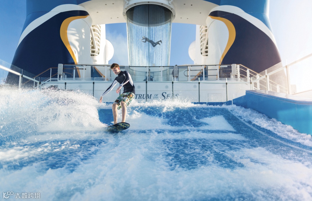 甲板冲浪也是皇家加勒比游轮上的特色项目之一。不太敢直接去尝试跳伞的,可以先去体验下甲板跳伞的失重感。船上还有超多的泳池,一起释放多巴胺~