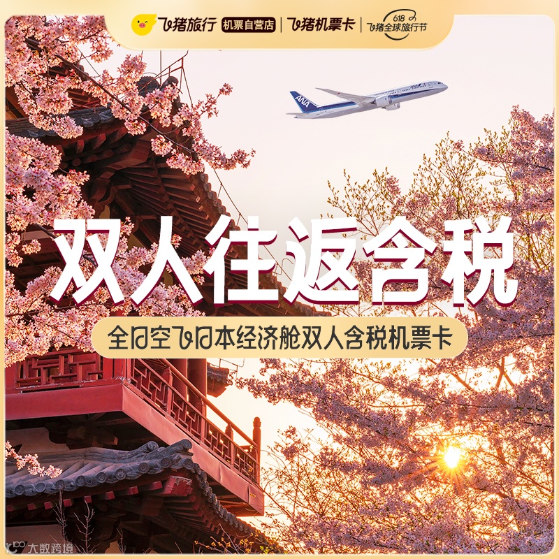 2、全日空飞日本经济舱双人含税机票卡=3300元起