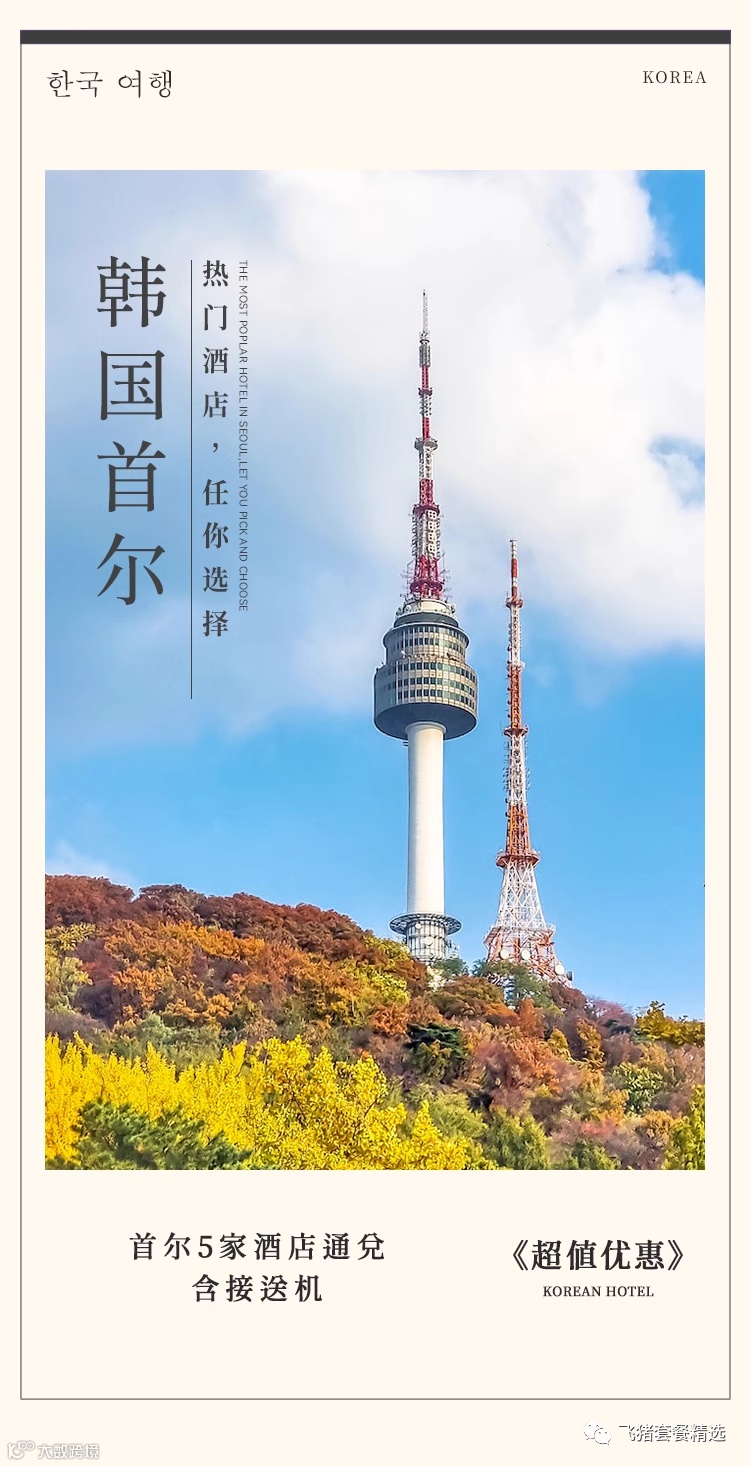 这个套餐是真的很优惠,首尔5家酒店通兑,都是当地热门的精品酒店,位置都很优越,距离明洞及东大门步行只要10分钟。
