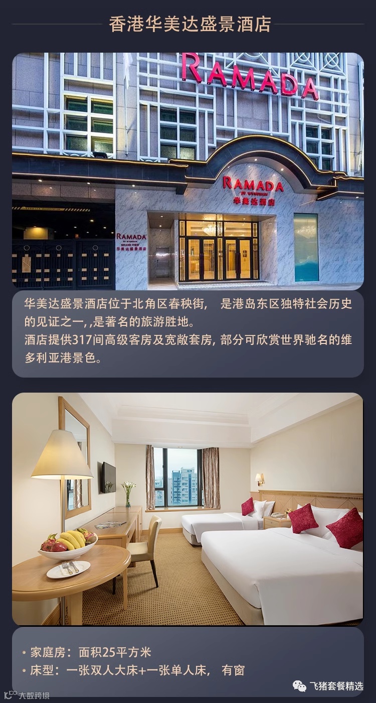 1、【618】香港华美达盛景酒店3天2晚家庭房三人套餐 = 999元