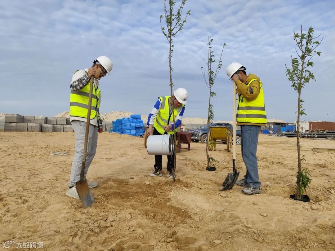 埃及新首都CBD项目,采用定型化围挡、可拆迁防护棚等可重复利用的环保材料进行施工现场遮挡,配备节能环保装备,减少能源消耗;通过道路洒水、防尘网覆盖降尘,种植树木净化空气,确保生产污水达标排放;严格落实垃圾分类,完善噪音吸音系统,用中建绿色智慧为中埃共建绿色家园添砖加瓦。