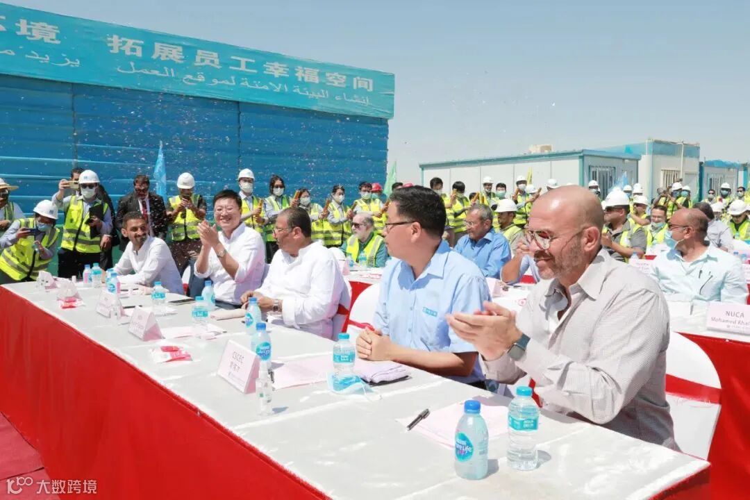 在热烈掌声和机器轰鸣中,中埃嘉宾一起宣布阿拉曼新城项目标志塔基础底板混凝土正式开始浇筑。