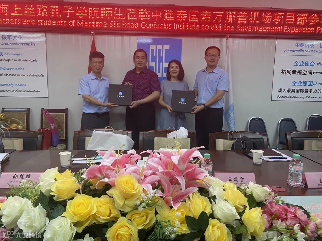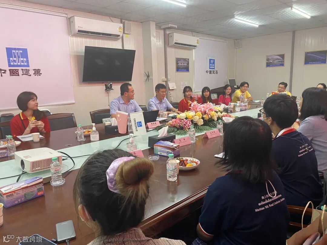 近日,海上丝路孔子学院泰方院长张楚雄、中方院长王尚雪与博仁大学工程系主任Narongdej Kiratiparanont博士、传媒学院Sutin Rojprasert博士带领中国留学生及泰国中文系学生赴中建泰国素万那普机场项目部进行访问交流。亚太区域代表处总经理兼项目经理申明华、项目副经理韩秀博及项目部各部门人员参与交流活动。