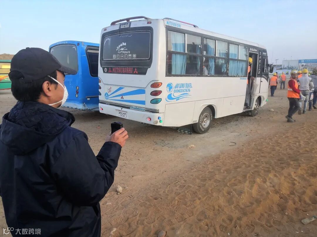 早上5点,面对浩浩荡荡的工人队伍,起初他们会与各标段同事协作,分小组、分区域、分步骤,以流水线形式,使用手持测温枪测温。后来,南大门购入热成像测温仪,使检测效率大大提高,确保了在90分钟内完成所有工人测温。为了提高与埃及工人的沟通效率,他们将工作中的常用对话翻译成阿拉伯语,制作成手卡交给每一位大门安保员;每天将测温情况拍照记录,及时发布在公司疫情防控QQ群,供公司领导全程监控工作落实情况。