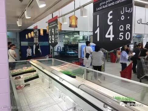 5日,卡塔尔当地超市牛羊肉被一抢而空。尘墨摄