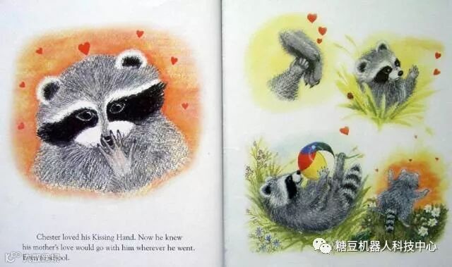 故事简介:小浣熊Chester不愿意去上学,因为他不愿意离开妈妈去一个陌生的环境。妈妈向他保证,他一定会喜欢新学校,并告诉他一个秘密:the kissing hand(魔法亲亲)。