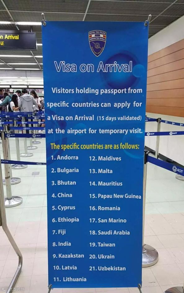 泰国免落地签证费政策中,21个国家及地区名单公布如下: