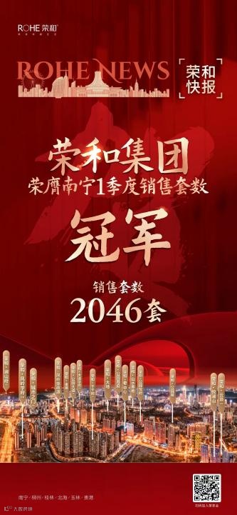 在2023年1季度克而瑞销售榜单数据中,荣和集团以1905套官方数据荣膺南宁1季度销售套数冠军,而据荣和官方更新多套未及时收录认购房源,实际销售套数为2046套,稳占南宁楼市榜首,占据南宁总成交套数1/6,也就是:每卖出6套房子,就有一套选荣和。