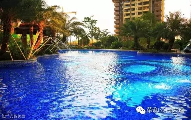 (荣和·公园大道1500㎡成人儿童多功能双泳池实景)