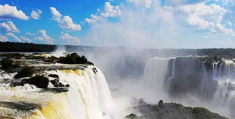 10、依瓜苏大瀑布,是世界上最宽的瀑布,位于阿根廷与巴西边界上伊瓜苏河与巴拉那河合流点上游23公里处,为马蹄形瀑布,高82米,宽4公里。1984年,被联合国教科文组织列为世界自然遗产。