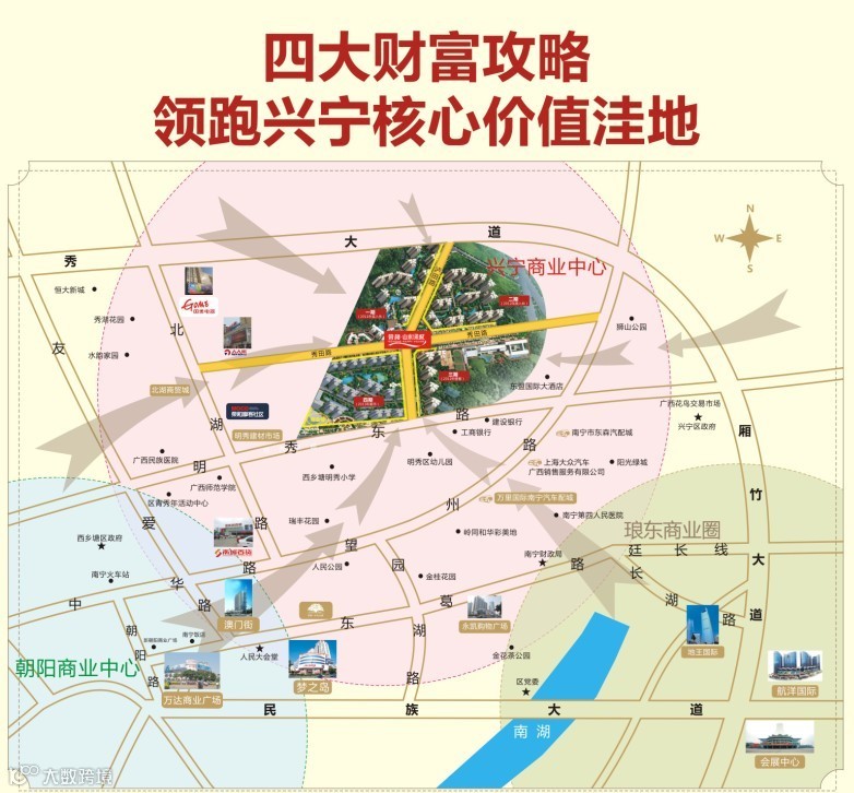 项目紧邻明秀东路、邕武路、秀田路、泸田路,网罗兴宁醇熟生活核心区域,出门就有30多路公交车可搭乘,提供更多出行方案,满足娱乐、工作、学习等需求。只需10分钟,即可通抵朝阳商圈、西乡塘大学区;15分钟直通琅东CBD、东盟商务区,20分钟可达琅东客运站,周边公交线路30余条,中央枢纽通达全城,醇熟生活配套左右相拥。