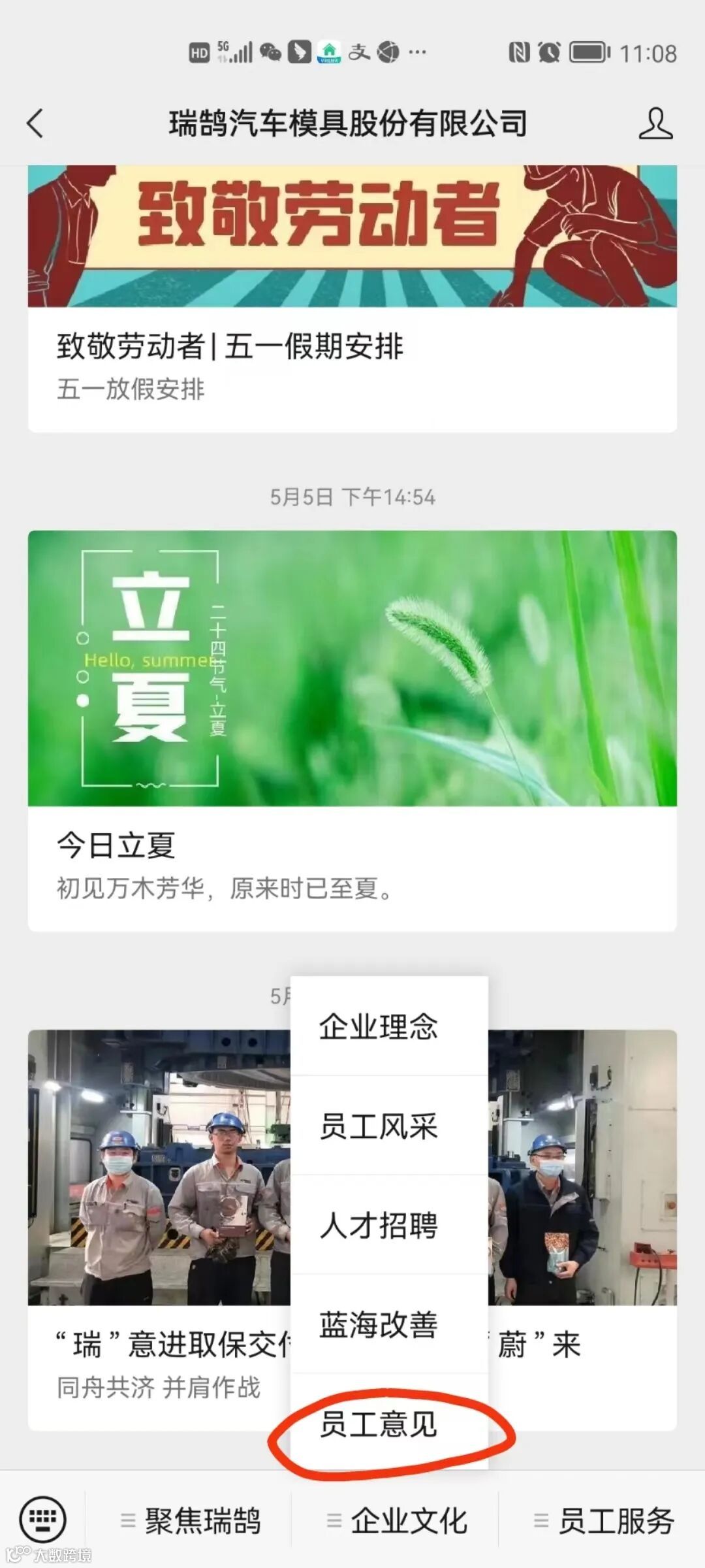 “员工意见”子栏目
