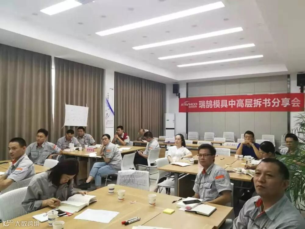 2019年瑞鹄模具中高层管理能力提升训练营打破惯有的培训模式,面向公司中高层干部进行团队管理方面的集中培训,发放《赋能》一书,立足于各自的管理岗位以个人视觉品读、研读,于9月上旬在公司培训室开始第一期的拆书交流会。
