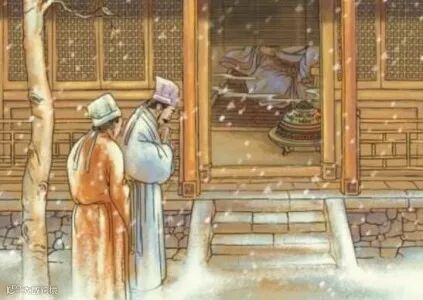 《宋史·杨时传》:“见程颐于洛,时盖年四十矣。一日见颐,颐偶瞑坐,时与游酢侍立不去。颐既觉,则门外雪深一尺矣。”