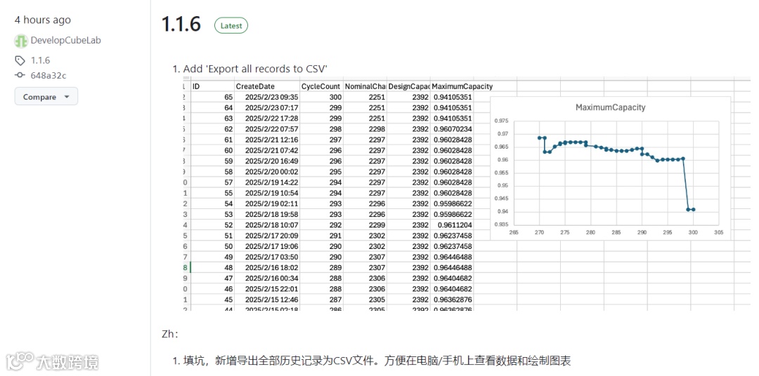 更新内容:新增导出全部历史记录为CSV文件。方便在电脑/手机上查看数据和绘制图表。(具体如图所示)