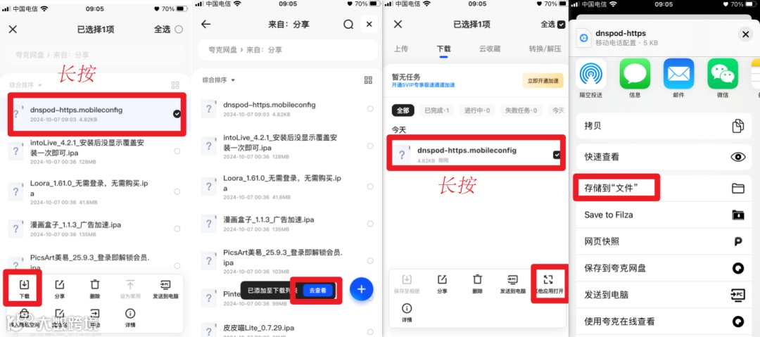 先转存--下载--保存到文件app