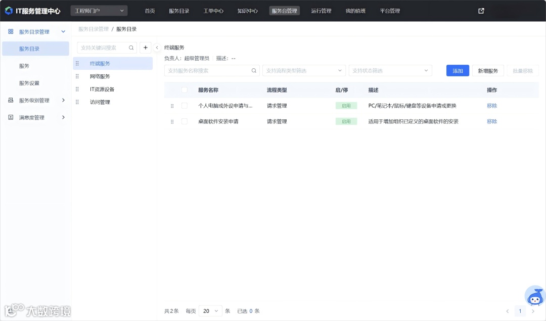 支持自定义多层级的服务目录,构建结构化服务目录。