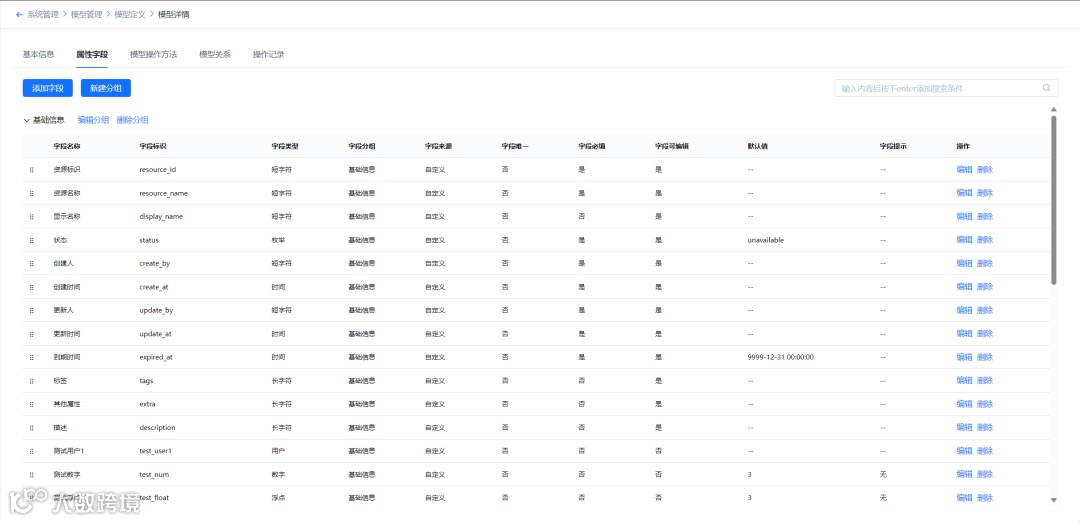 视图支持设置展示字段、多字段搜索、导出及批量操作资源的能力。该视图是根据模型的属性字段定义生成页面的表格,根据模型的操作方法生成页面的操作按钮和搜索支持的字段。