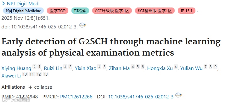 无症状却增病风险的G2SCH,因常规体检缺专项检测而隐匿发病,现有模型难落地。浙江大学医学院用超9万例体检数据,建出AUC0.870、敏感度86.8%的机器学习模型,凭常规体检指标即可早期筛查,补全低成本筛查工具空白。