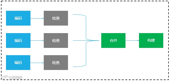 在传统的开发模式下,开发人员编写完代码后即更新提交至公共代码仓库,待开发完成之后由专人对所有开发人员提交的代码进行整合以便准备构建,如果构建失败,则需要检查或修改代码。但开发人员对代码及业务逻辑的熟悉程度可能会随着时间推移而下降,修改的难度和工作量也大大增加。而修改完成后还需要重复进行合并、检查工作,延长了集成环节时间。
