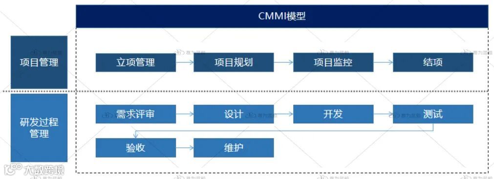 CMMI作为能力成熟度模型被各大企业熟知,即便是现在也依然在被许多传统企业或大型企业所使用,采用此模型的优势有许多,例如可以有效控制质量、定义过程、控制变更、管控范围,但缺点也很明显,繁杂的过程使得在处理过程之中耗费较多时间,这在如今面向业务需要快速响应的情况下显得有些格格不入。