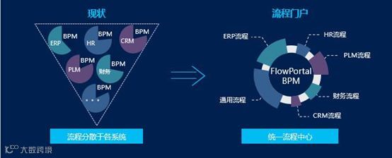 目前企业的趋势是将分散的流程集中到基于BPM工具的统一流程中心,使用BPM工具作为企业的流程战略支撑平台。