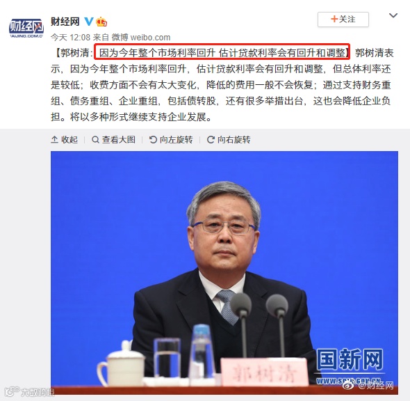 去年整个金融机构向社会让利1.5万亿元,郭树清表示今年有很多政策将延续下去,不过因为今年整个市场利率在回升,预计贷款利率也会有回升,而总的来说,利率还是比较低的。“我们将通过支持财务重组、债务重组、企业重组、债转股等多种形式继续支持企业,降低企业负担”。