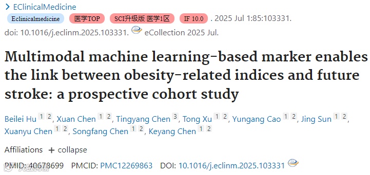 中 文 题 目:基于多模态机器学习的标记使肥胖相关指数与未来中风之间存在联系:一项前瞻性队列研究