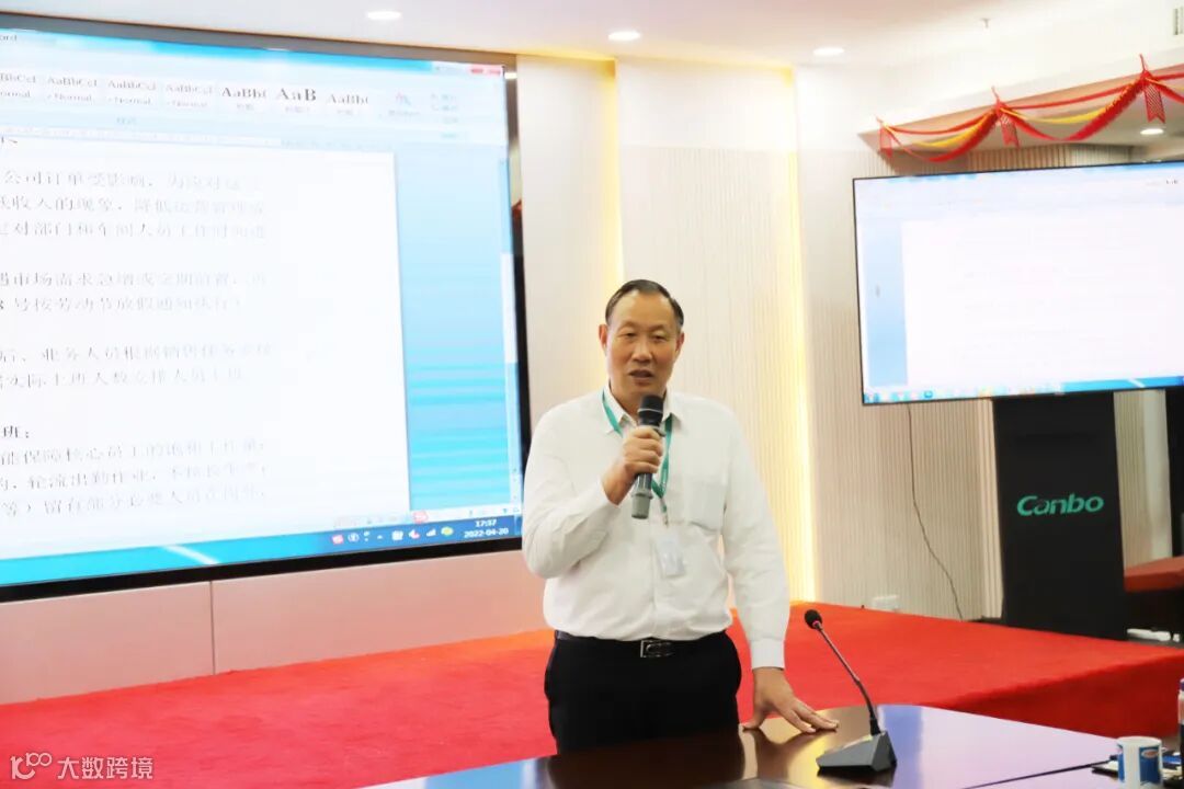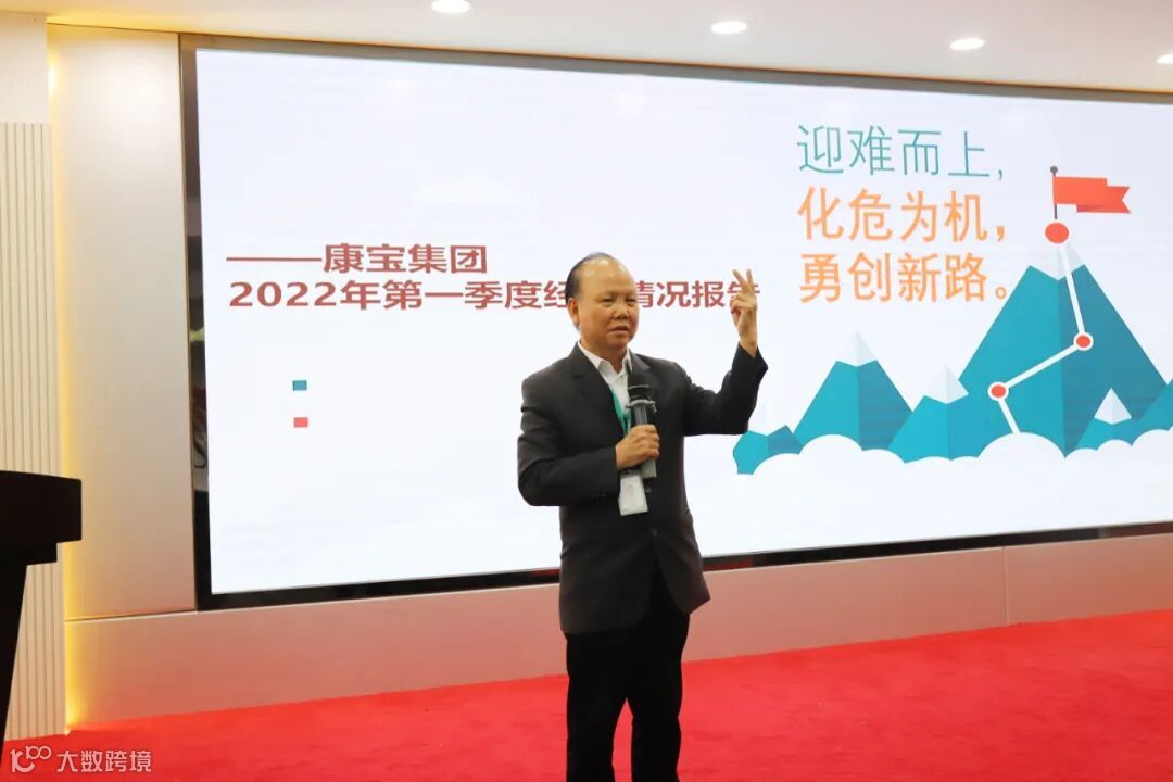 ▲康宝常务副总裁李永光作主题为《迎难而上,化危为机,勇创新路——康宝第一季度经营情况分析》报告