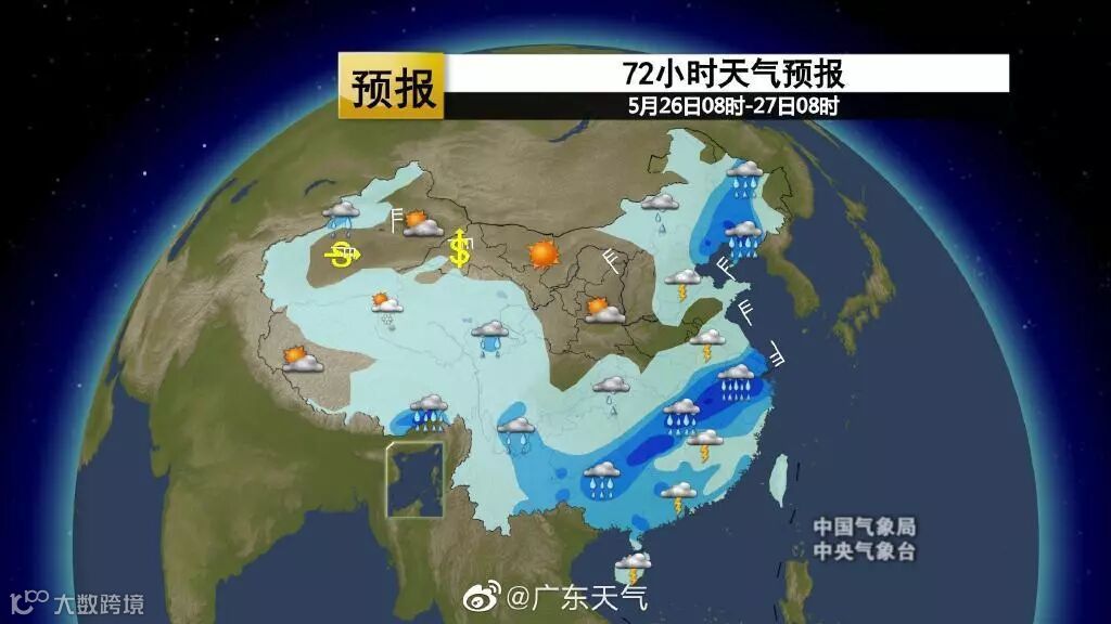 27日-29日受高空槽、低空切变和弱冷空气共同影响,粤北、珠三角、粤西市县有暴雨局地大暴雨,其余市县有大雨局地暴雨。